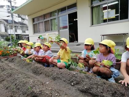 子ども達みんなで植えたサツマイモの苗。これからどんどん成長し、秋にはお芋堀りが出来るかな。それまでしっかり見守って育てていきます。楽しみですね。