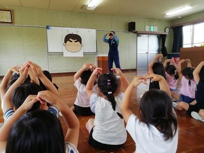 園内放送で避難の指示があると教室内で頭を守り、先生の周りに素早く集まることが出来ました。園長先生より地震の際の行動などのお話があり、年長組