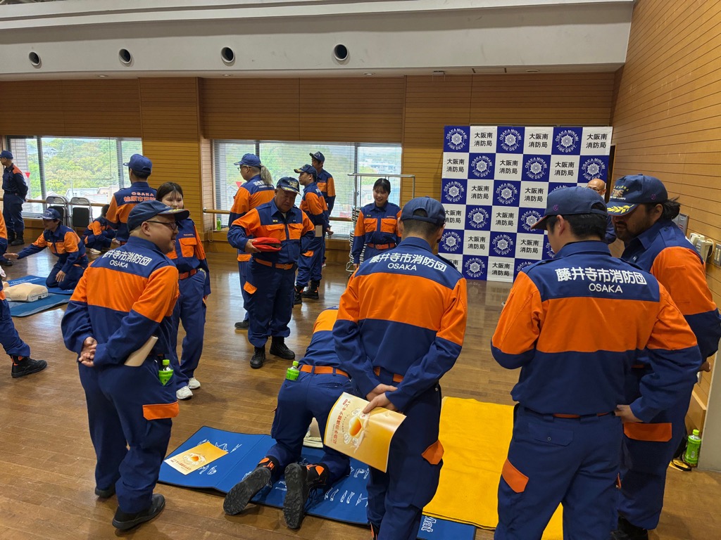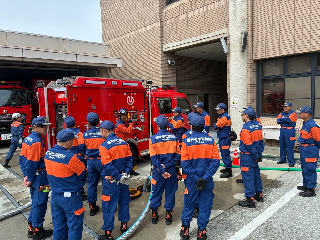 4月19日(日曜日)に大阪南消防局にて、柏原市・羽曳野市・藤井寺市の消防団が合同で講習会と訓練を行いました。