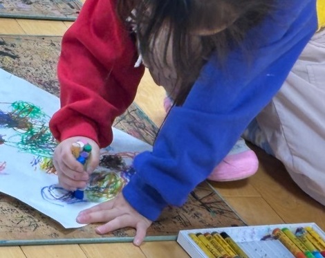 子どもに豊かな創造力を育みたい・・・それを実現していくには、保育者が子どもの表現をどのようにとらえ、どのように受け止めていくかが大きな鍵となります。子どもの表現をみつける目をもち、感じていることを引き出せる関わりについて、実際の保育を通して学ばせていただきました。クレパスを使って「秋の色をつくってみよう」との活動の中では、子どもたちが思い思いに「こんなんなったよ」と、色や形を楽しむ姿がありました。