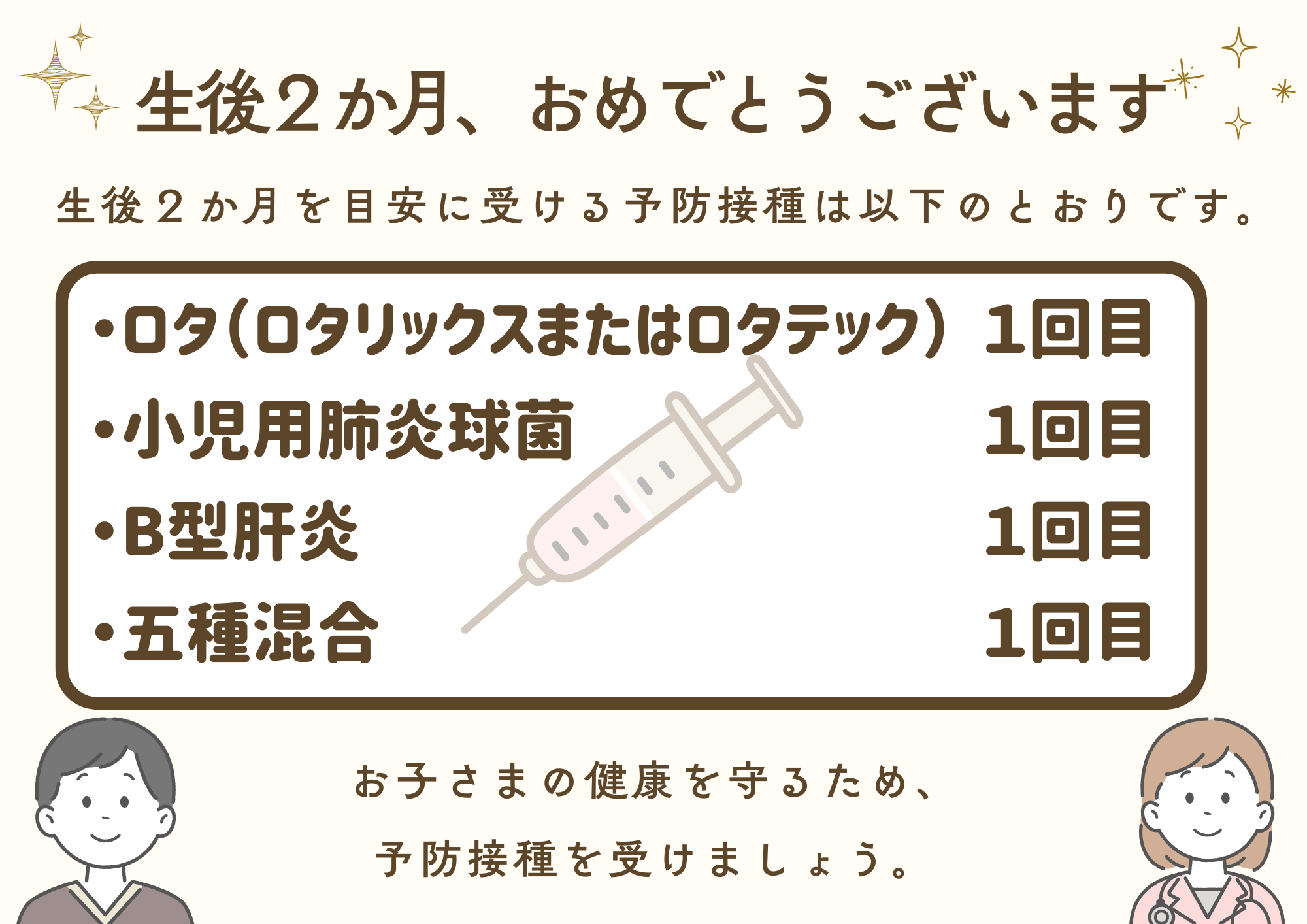 お子さまの月齢・年齢に合わせて、定期予防接種の接種時期をお知らせします。