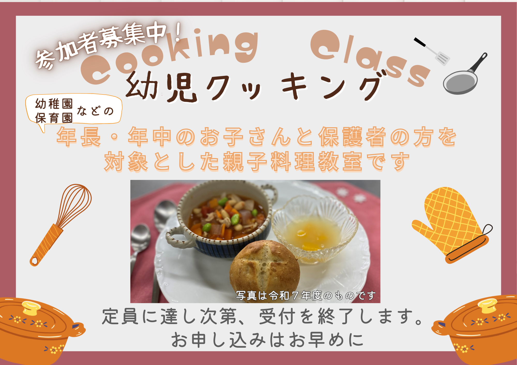 開催時期に合わせて、離乳食教室や親子クッキング、赤ちゃんルームなど、お子さんの年齢にピッタリの教室や交流の場をご案内します。