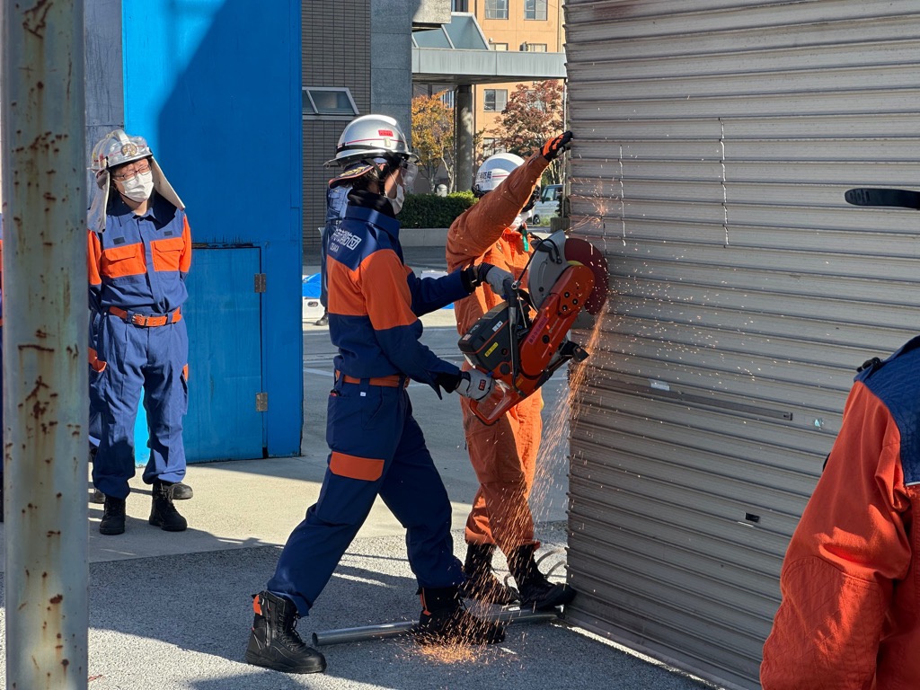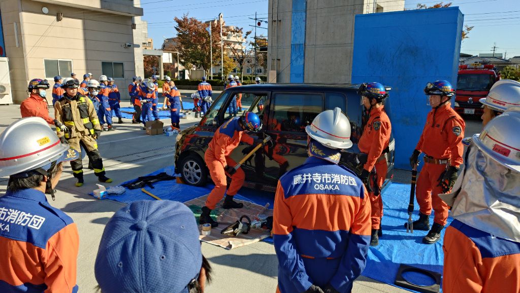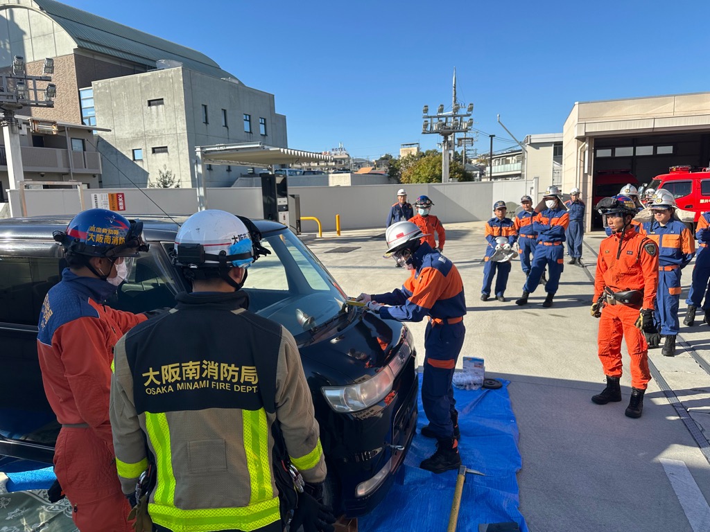 令和7年11月16日(日曜日)に大阪南消防組合柏羽藤消防署において、同署の現役隊員に講師をしていただき、救助資機材取扱講習会を実施しました。