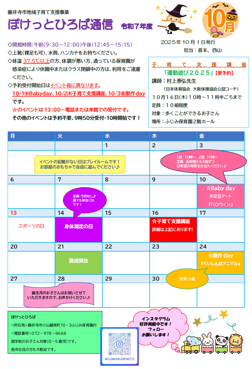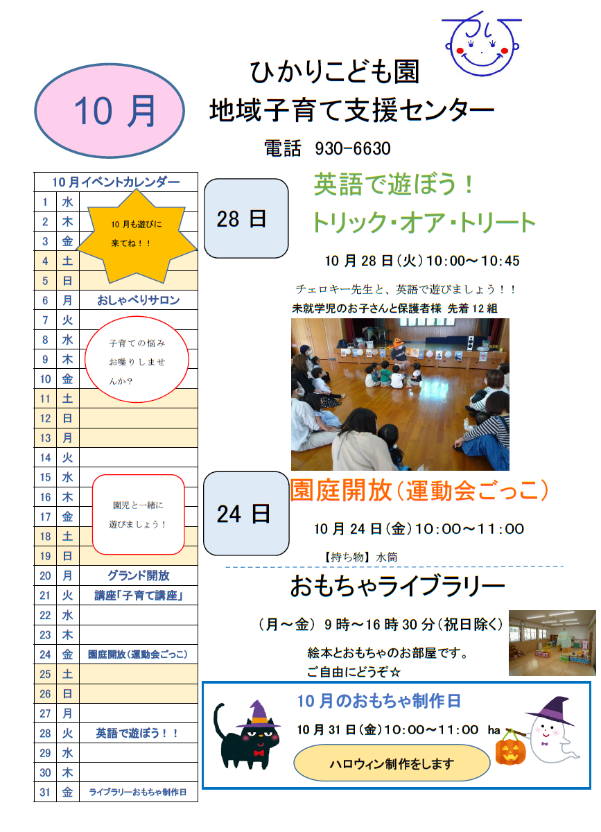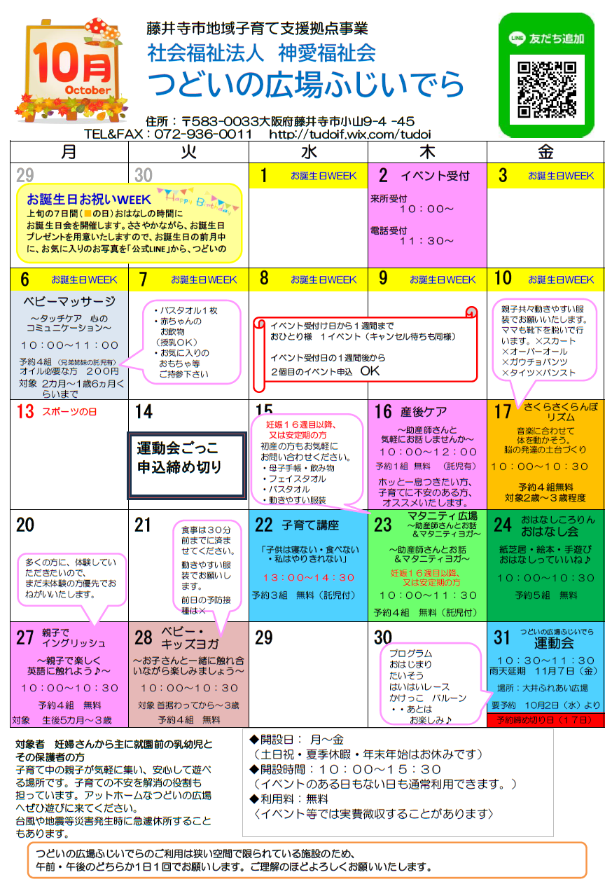 つどいの広場ふじいでら10月イベントスケジュール (PDFファイル: 266.1KB)