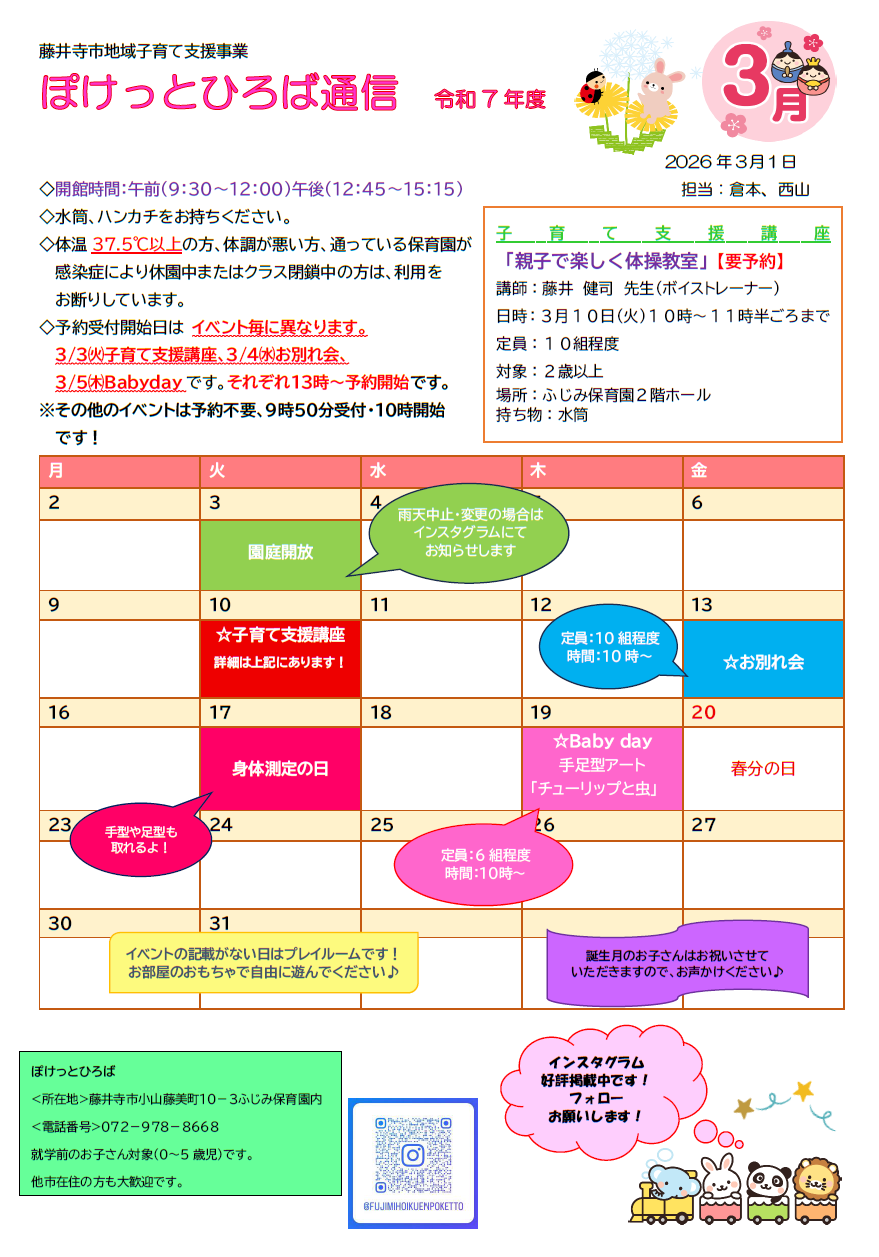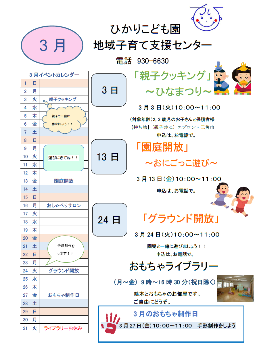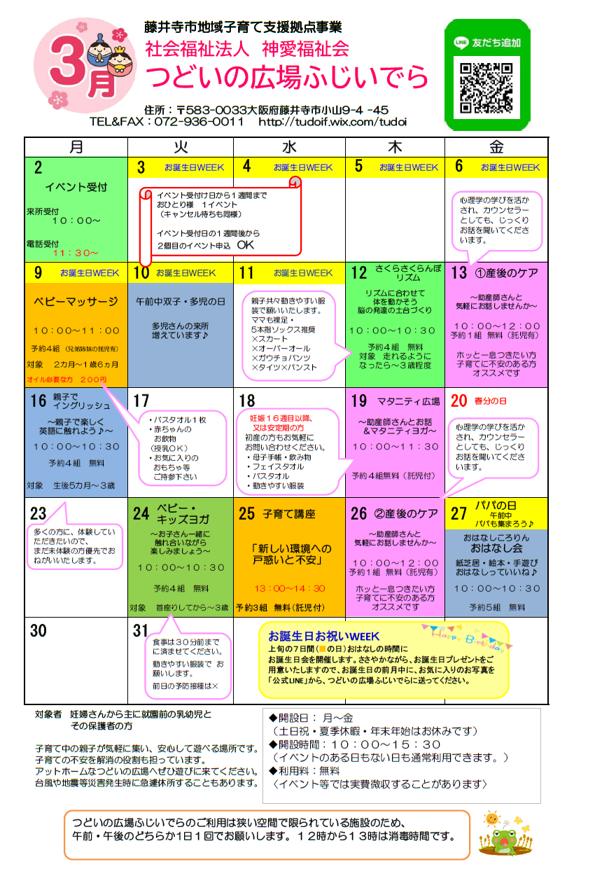 つどいの広場ふじいでら3月イベントスケジュール (PDFファイル: 278.0KB)