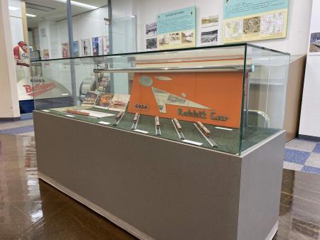 ラビットカーの設計図を含むテクニカルノートやエンブレム、Nゲージを展示しました。