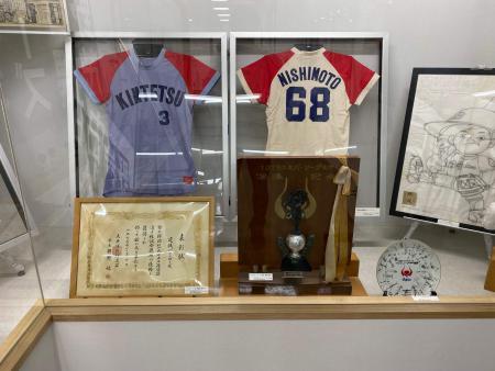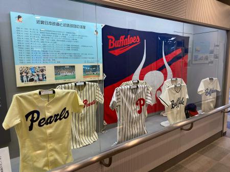 藤井寺球場時代の近鉄パールズ~バファロー~バファローズのユニフォームが、コーナー入口でお出迎えします。