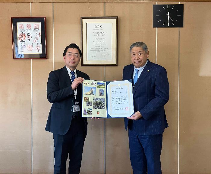 令和8年3月に、本市が有する世界遺産「古市古墳群」など歴史的又は文化的な遺産の保全に関する事業への活用を目的に、株式会社三菱UFJ銀行(藤井寺支店兼富田林支店長 増田 大)様から、50万円のご寄附をいただきましたのでお知らせいたします。(贈呈式は、令和8年3月16日に行いました。)