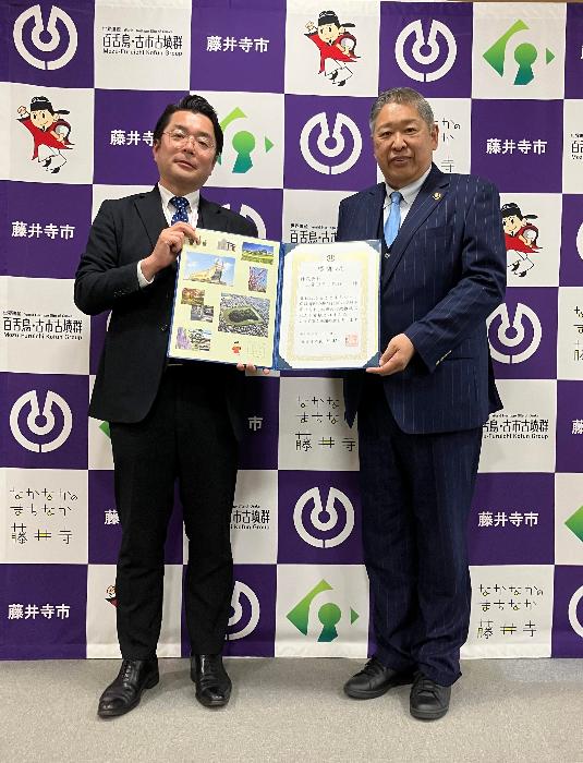(左から)株式会社三菱UFJ銀行 藤井寺支店兼富田林支店長 増田 大様、藤井寺市長 岡田 一樹