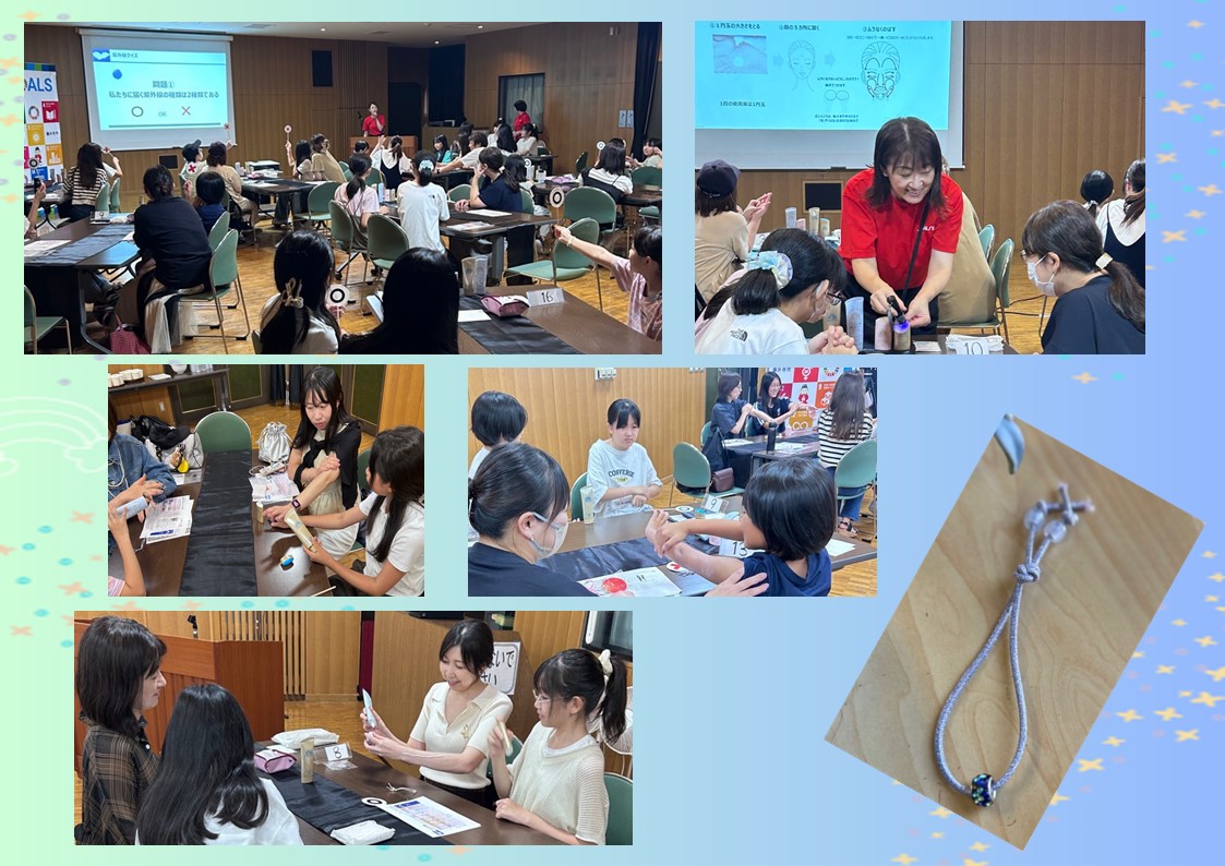 紫外線クイズ・日焼け止め塗布体験・ゴムブレスレット作り