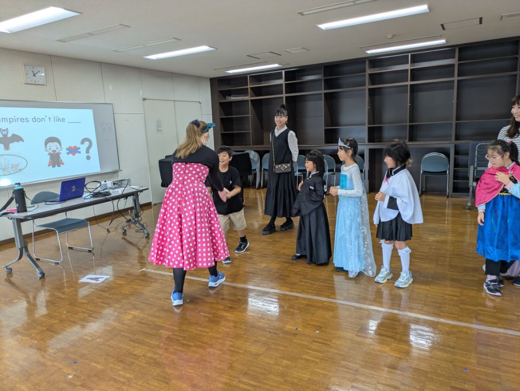 「Halloween!!」をテーマに、ゲームと歌を楽しみながら、ハロウィンにちなんだ単語を学ぶアクティビティでした。