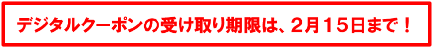 ※期限までにデジタルクーポンの受け取りができなかった方は、クオカード(5,000円分)を送付いたしますので、【2月27日までに】コールセンターへご連絡ください。