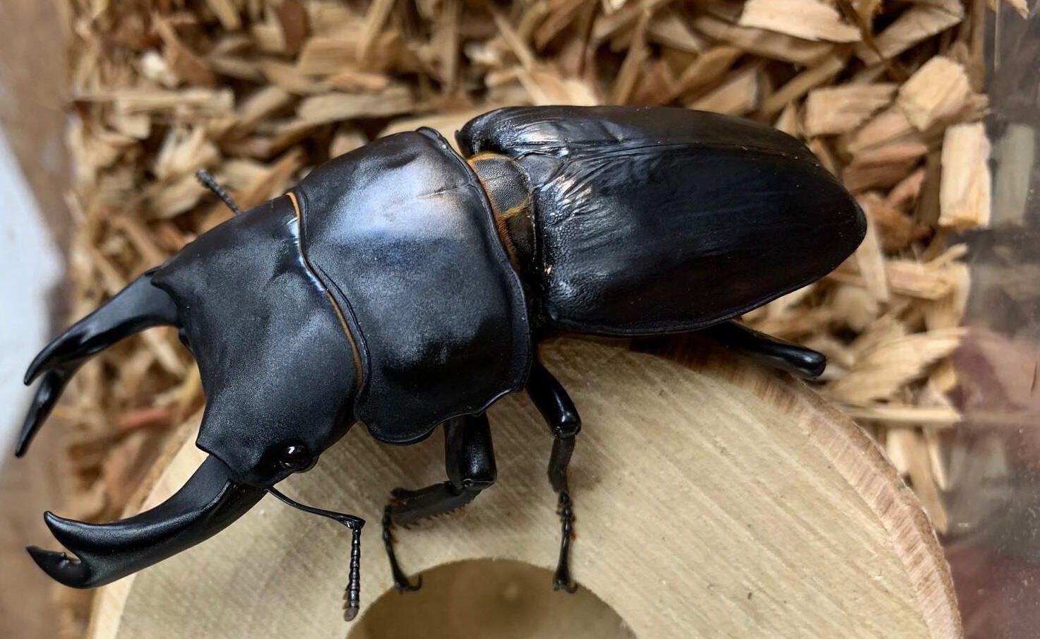 実際にプレゼント予定のオオクワガタ(展示中)