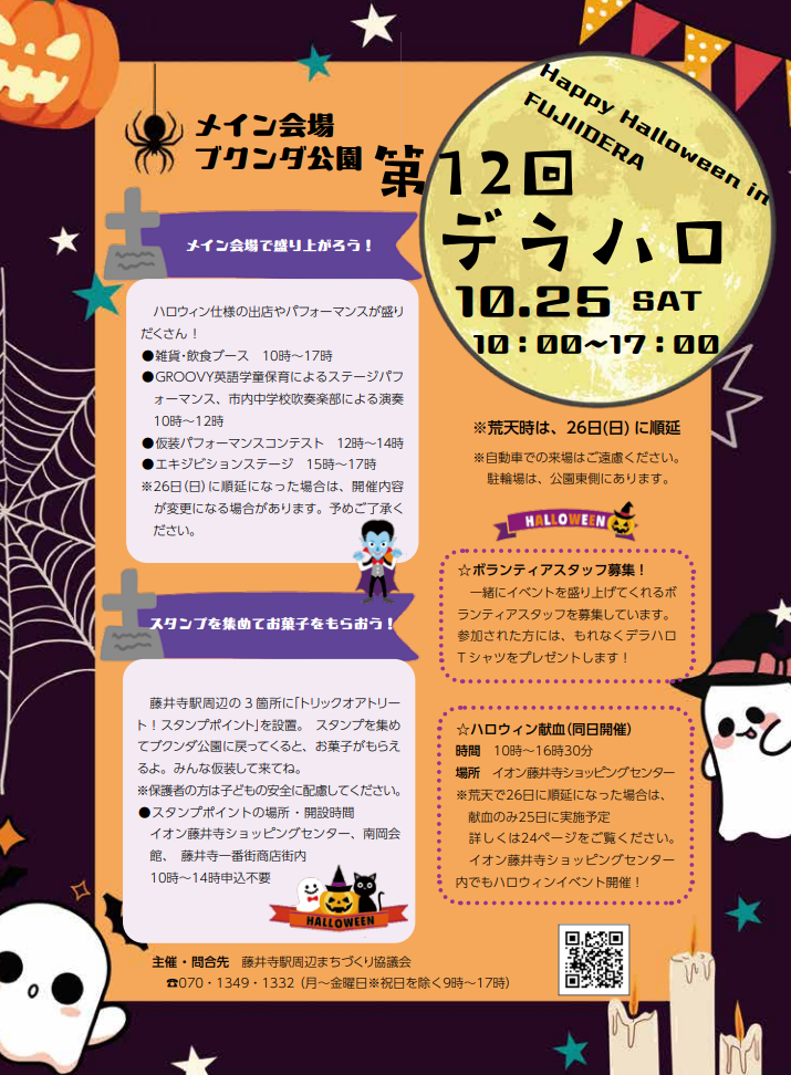 同時開催 ・ハロウィン献血 場所 イオン藤井寺ショッピングセンター ・イオンハロウィンイベント イオン藤井寺ショッピングセンター内でも ハロウィンイベント開催! 詳しくは、協議会ホームページをご覧ください。 |