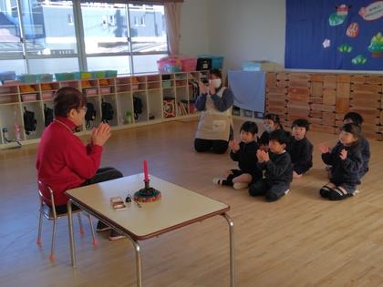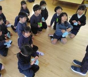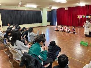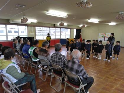 今年度年長は最後だったので“おはなしころりん”の皆さんにお礼の気持ちを込めて歌を聞いて頂きました。「次は小学校で会いましょうね!」二年間有難うございました。