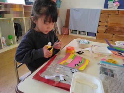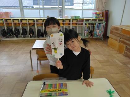 おはな紙やボタンなどを使って飾り付けもしました。「ほら、見て~!」と職員室まで見せにきてくれましたよ。