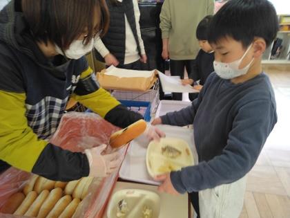 今日は今年度最後の給食試食会でした。子ども達の大好きなコッペパンがあります。