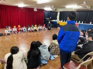 2月20日の劇参観に向けて年長組、年少組共に毎日頑張っています。年少組は『金太郎』のお話です。金太郎や動物になりきってお芝居を楽しんでいますよ。
