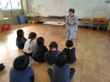 今日は『おはなし会』でした。今の季節に合った素敵な物語を選んでくださっています。ろうそくに炎が灯ったらお話スタートです。