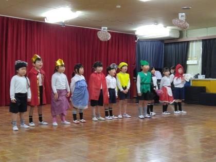 年長は練習している長い劇を初めてたくさんのお客さんにみてもらいました。緊張しながらも、長いセリフや、難しい役割も頑張っていましたよ。一人一人の練習の成果を5年生はしっかりほめてくれました。