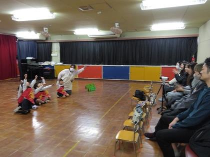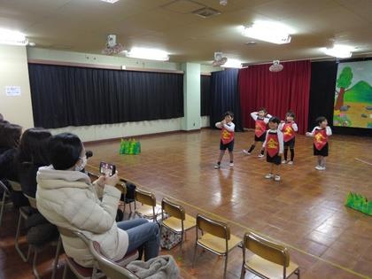 無事にやりきった年少組さん。お家の方に見て頂き、「楽しんで取り組んでいたのが伝わりました」「すごくかわいかったです」と感想を頂きました。