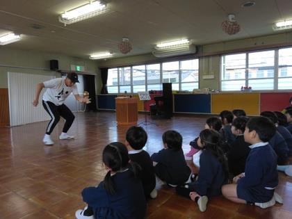 けん玉パフォーマー『けん玉トリッカーズ』のみやちゃんさんが幼稚園に来てくださいました。軽快な音楽と共に登場し様々な技を繰り広げ、子ども達は大興奮です!