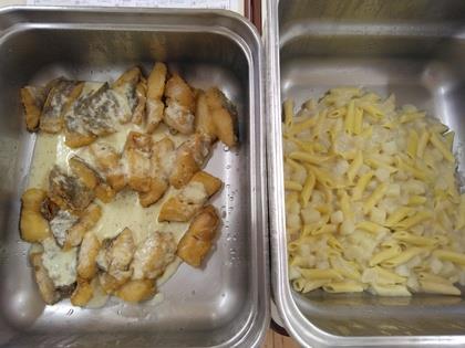 本日はスイス料理です。・コッペパン・アルペンマカロニ・ベルナープラッテ(ソーセージと野菜の煮込み)・フィレ・ド・ペルシェ(白身魚のタルタルソースがけ)でした。外国のお料理の名前を知る事が出来ましたね。