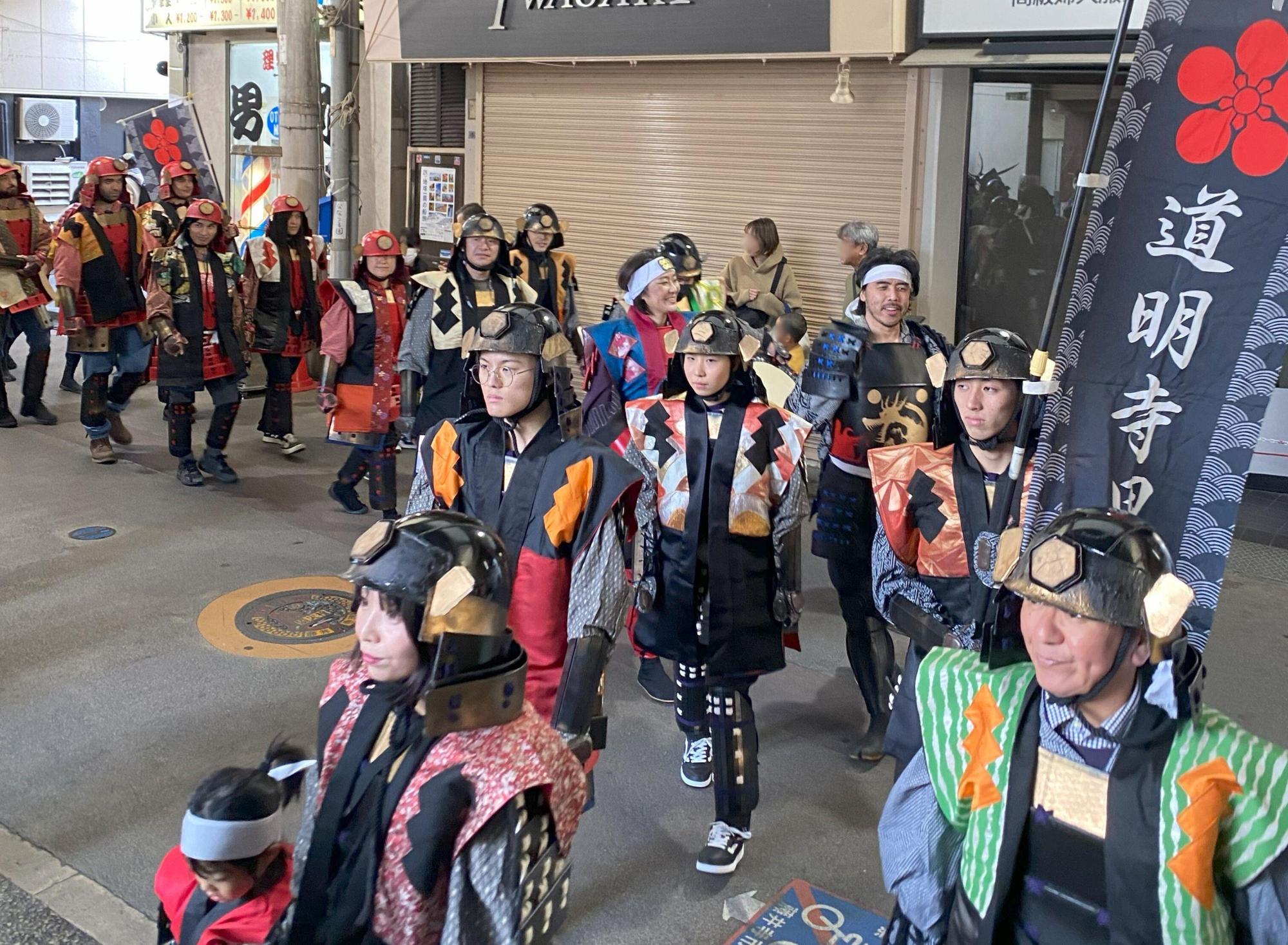 「道明寺合戦まつり2025」のプレイベントとして、12月1日(日曜日)に「道明寺武者行列2024」を実施し、藤井寺市道明寺を舞台に繰り広げられた道明寺合戦で活躍した武将の甲冑を身に着け、藤井寺市役所から道明寺天満宮まで練り歩きました。